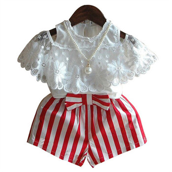 Nuovi vestiti per ragazze per bambini Set estate nuova camicia in Chiffon con spalle scoperte + pantaloni corti a righe 2 pezzi vestito da ragazza abbigliamento per bambini